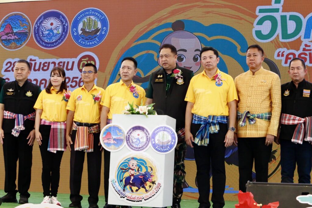 เมื่อเวลา 10.00 น.วันที่ 6 ตุลาคม 2568 ที่สนามหน้าที่ว่าการอำเภอเมืองชลบุรี ”รองนายกเฮ้ง“นายสุชาติ ชมกลิ่น รองนายกรัฐมนตรี รมว.ทรัพยากรและสิ่งแวดล้อม ได้เดินทางมาเป็นประธานเปิดงานประเพณีวิ่งควายจังหวัดชลบุรีครั้งที่ 154 โดยมีนายนริศ นิรามัยวงศ์ ผวจ.ชลบุรี นายวิทยา คุณปลื้ม นายกอบจ.ชลบุรี เป็นประธานร่วมในการเปิดงาน ประเพณีวิ่งควาย มีพี่น้องชาวชลบุรีมาร่วมให้การต้อนรับเป็นจำนวนมาก