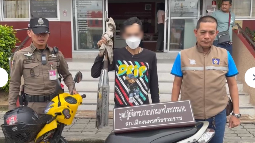 โดยคนขับรถ จยย.คะนดัวกล่าวพยายามจะจะเก็บตัวเงียบ แต่ ร.ต.อ.พละพล คงฉ่ำ หัวหน้าชุดปราบปรามการโจรกรรมรถ สภ.เมือง จ.นครศรีธรรมราช จึงได้สอบสวนสืบสวนและจับกุม ก่อนนำตัวพร้อมรถ จยย. เดินทางมาพบ พ.ต.ท.ธีระพล ที่ สภ.เมือง พร้อมทำการซื้อท่อไอเสียใหม่มาเปลี่ยนทันที