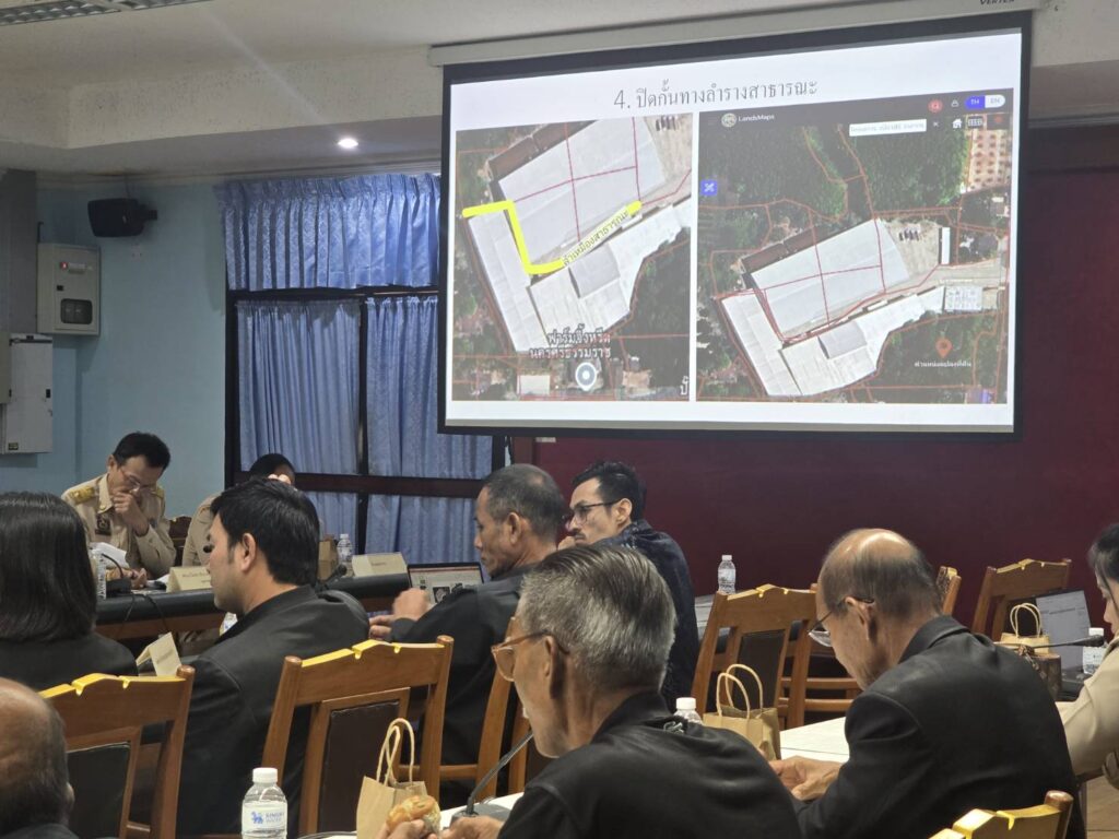 (28 ต.ค.) หลังจากนายพงศ์ปณต อุปลา หรือ “คริสต์” นักธุรกิจหนุ่ม ในด้านอสิงหริมทรัพย์ ทั้งในและต่างประเทศ ผู้ร้องกรณีการอุญาติให้ก่อสร้างโรงงานอุตสาหกรรมค้าข้าว ในพื้นที่ ต.โพธิ์เสด็จ ซึ่งผังเมืองโซนสีเขียว และการขออนุญาติถมที่ การก่อสร้างอาคาร ไม่ถูกต้องครบถ้วนขัดข้อกฎหมาย และยังมีการถมลำเหมืองสาธารณะนำพื้นที่มาใช้ประโยชน์ในบริษัทตัวเอง จนทางคณะกรรมาธิการที่ดิน ทรัพยากรธรรมชาติและสิ่งแวดล้อม สภาผู้แทนราษฎรฯ นำหน่วยงานที่เกี่ยวข้องลงตรวจสอบพื้นที่จริงเมื่อวานนี้ (27 ต.ค.) พร้อมประชุมชี้แจงรายละเอียดและแนวทางการแก้ปัญหา หรือดำเนินการบังคับใช้กฎหมายอย่างเคร่งครัด ที่ห้องประชุมชั้น 3 ศาลากลางจังหวัดนครศรีธรรมราช โดยมีนายสมชาย ลีหล้าน้อย ผู้ว่าราชการจังหวัดนครศรีธรรมราช นำหัวหน้าส่วนราชการที่เกี่ยวข้องร่วมประชุมชี้แจง และกำหนดมาตรการดำเดินการบังคับใช้กฎหมาย