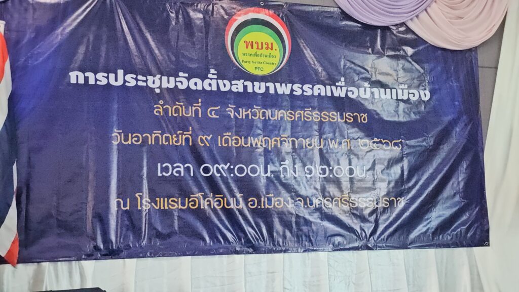 เมื่อเวลา 09.45น.วันที่ 9 พย.2568 ที่ห้องประชุมโรงแรมอิโค่อินน์ อ.เมือง จ.นครศรีธรรมราช นายประสพ บุษราคัม หัวหน้าพรรคเพื่อบ้านเมือง ได้เดินทางม่เป็นประธานประชุมสมาชิกพรรคและจัดตั้งสาขาพรรคเพื่อบ้านเมือง(พบม.) ลำดับที่ 4 จังหวัดนครศรีธรรมราช (สาขาภาคใต้ตอนบน) โดยมีสมาชิกพรรคเพื่อบ้านเมืองเข้าร่วมประชุมจำนวนมาก จากนั้นนายประสพ ได้กล่าวกีบสมาชิกพรรคเพื่อบ้านเมือง ได้กล่าวปราศรัยว่า การพบกันในวันนี้ ถือเป็นนิมิตหมายที่ดียิ่ง ที่กระผมจะได้มีโอกาสมาเรียนพี่น้องสมาชิกพรรคทุกท่านว่า บัดนี้ พรรคเพื่อบ้านเมือง ได้เป็นพรรคการเมืองโดยสมบูรณ์ตามกฎหมายว่าด้วยพรรคการเมือง และ ตามสิทธิเสรีภาพตามรัฐธรรมนูญแห่งราชอาณาจักรไทย เมื่อวันอังคารที่ 7 ตุลาคม 2568 แล้ว และเป็นพรรคการเมืองที่มีนโยบายที่จะส่งผู้มีคุณธรรม มีความรู้ ความสามารถ และมีประสบการณ์ ลงสมัครรับเลือกตั้งเป็นสมาชิกสภาผู้แทนราษฏร ในนาม “พรรคเพื่อบ้านเมือง” ให้ครบทุกเขตทั่วประเทศในการเลือกตั้งครั้งต่อไป