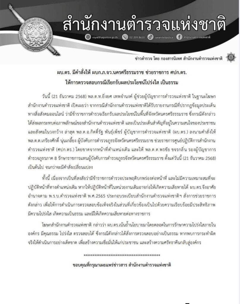 เปิดประเด็นใหม่ “ผู้การเกรียง” ผงาด นั่ง ผู้การฯเมืองคอนเพราะอาวุโส ไม่มีการทุ่ม 30 ล้านซื้อตำแหน่งตามที่เป็นข่าว