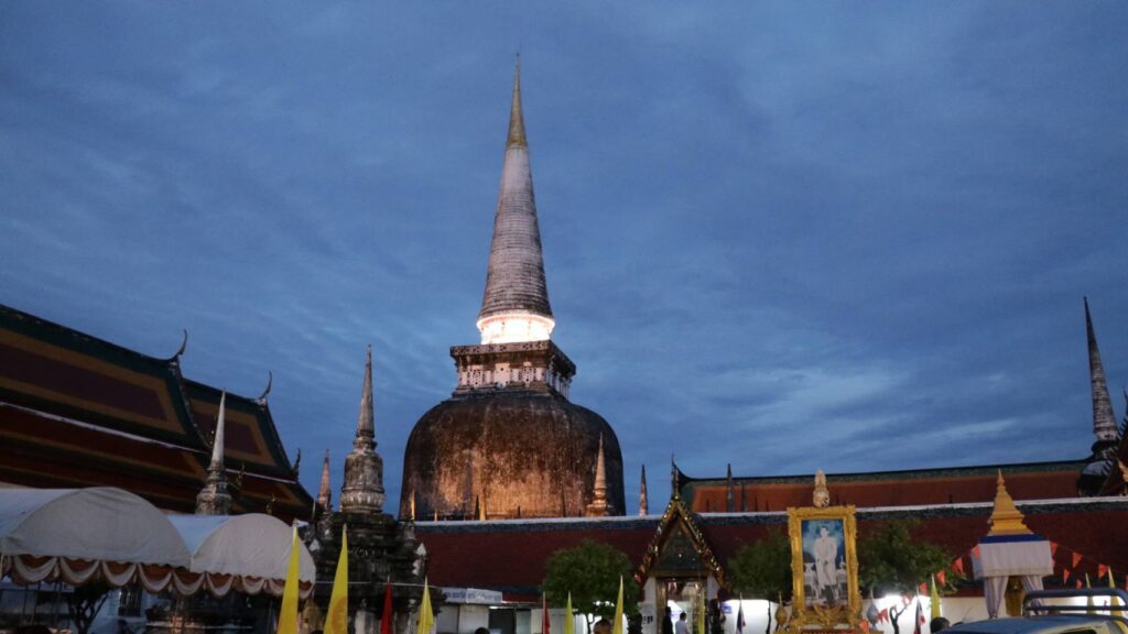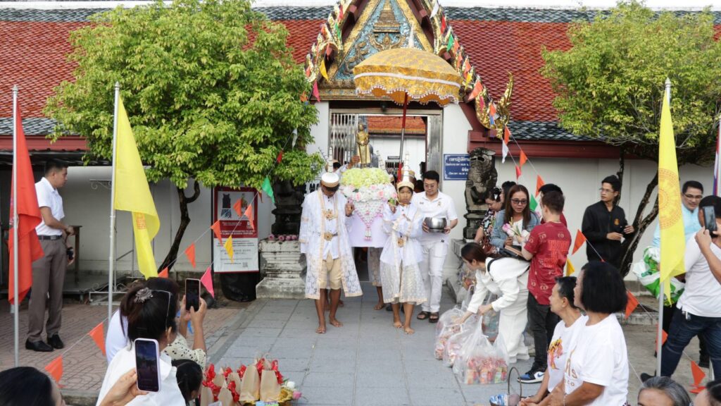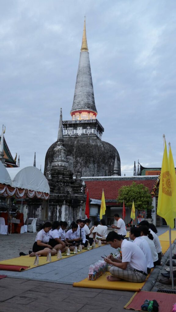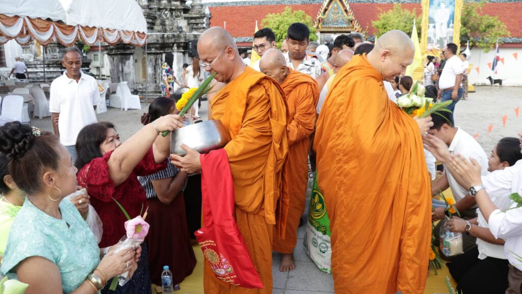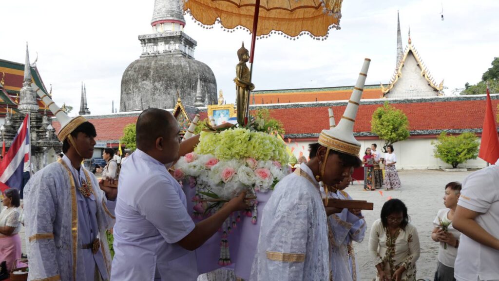 พุทธศาสนิกชนชาวนครศรีธรรมราชร่วมตักบาตรเทโวโรหณะ เนื่องในเทศกาลออกพรรษา ณ วัดพระมหาธาตุ วรมหาวิหาร