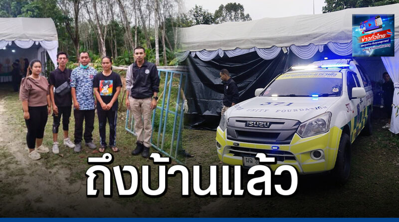 (9 ต.ค. 68) เวลาประมาณ 08.10 น. เจ้าหน้าที่มูลนิธิประชาร่วมใจ นำร่างของนายเมธาชาญ หรือน้องมีน อายุ 24 ปี กลับมาถึงบ้านเกิดที่ ต.ทอนหงส์ อ.พรหมคีรี จ.นครศรีธรรมราช โดย มี น.ส.สุภาวดี หรือ มายด์ พี่สาว นั่งมากับรถมูลนิธิด้วย เมื่อมาถึงบ้านเกิด ได้มีนายอัศวเทพ และนางนาวี พ่อและแม่ของนายเมธาชาญ พร้อมญาติ รอรับศพด้วยความเศร้าโศกเสียใจกอดร่ำไห้กันตลอดเวลา