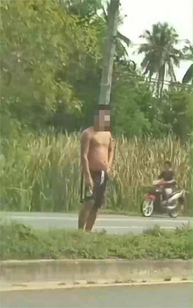 นายอำเภอปากพนังเมืองคอนนำกำลังเจ้าหน้าที่สยบหนุ่มคลุ้มคลั่งขว้างปาของใส่ชาวบ้านและรถยนต์ที่วิ่งผ่านไปมา