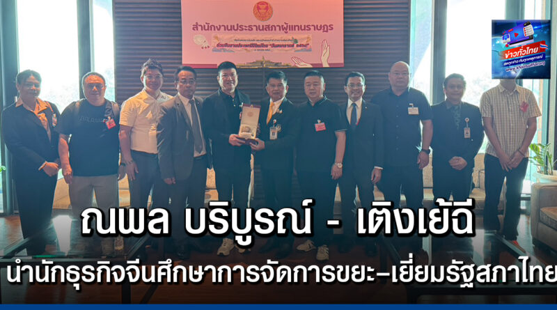 ณพล (สัมภาษณ์) บริบูรณ์ คณะทำงาน นายฉลาด ขามช่วง พร้อม เติง-เย้ ฉี นายกสมาคมนักธุรกิจไต้หวันชลบุรี พานักธุรกิจจีนดูการแก้ไขปัญหาขยะในไทย พร้อมเยี่ยมชมรัฐสภาไทย