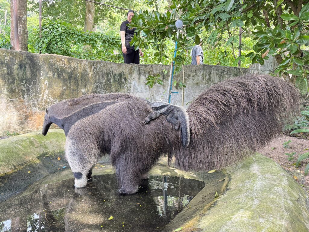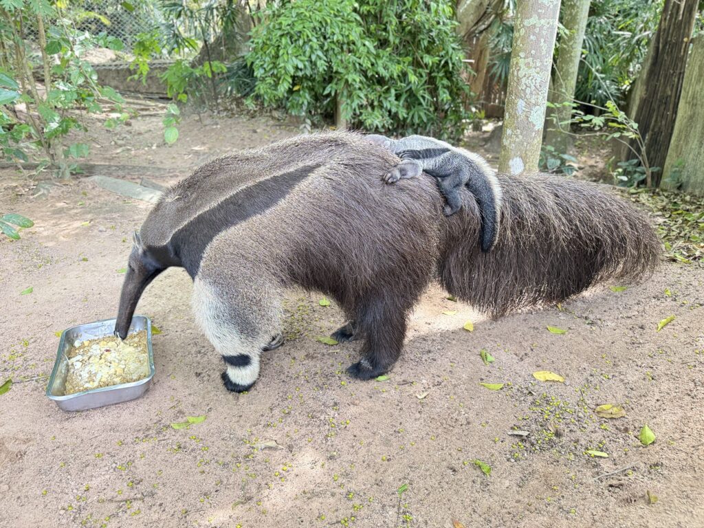 วันนี้ (21 ตุลาคม 2568) นายณรงวิทย์ ชดช้อย ผู้อำนวยการสวนสัตว์เปิดเขาเขียว จ.ชลบุรี เปิดเผยว่าสวนสัตว์เปิดเขาเขียว ได้เปิดตัวสมาชิกใหม่ลูกตัวกินมดยักษ์ จำนวน 1 ตัว ยังไม่ทราบเพศ เนื่องจากแม่ยังหวงลูกอยู่ ไม่ยอมให้เข้าใกล้ เกิดเมื่อวันที่ 14 ตุลาคม 2568 จากแม่ชื่อ วิลสัน อายุ 19 ปี และพ่อชื่อ ซานดิเอโก อายุ 20 ปี โดยเจ้าหน้าที่ที่เลี้ยงดูและสัตวแพทย์ของสวนสัตว์เปิดเขาเขียว เฝ้าติดตามดูแลอย่างใกล้ชิด ซึ่งขณะนี้ลูกตัวกินมดยักษ์มีอายุ 7 วัน