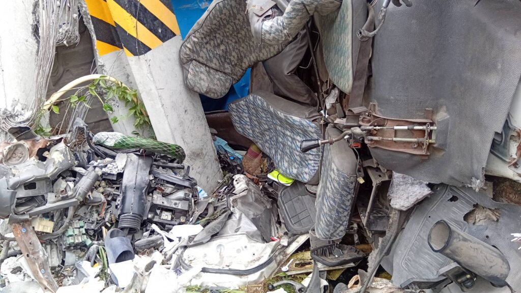 ซึ่งบรรทุกไม้อัดโลมาเต็มคันรถอยู่ในสภาพพลิกตะแคงพุ่งชนกระเสาไฟฟ้าขนาด 115kv ในสภาพขวางถนนโดยภายในซากรถพบผู้เสียชีวิตเป็นชายหนึ่งรายคือนายถนัด ไชยอ้ายอายุ 45 ปีปีคนขับรถบรรทุกหกล้อเสียชีวิตคาซากรถทางเจ้าหน้าหน่วยกู้ภัย ต้องใช้อุปกรณ์กระถางร่วม 2 ชั่วโมงจึงสามารถนำร่างผู้เสียชีวิตออกมาได้