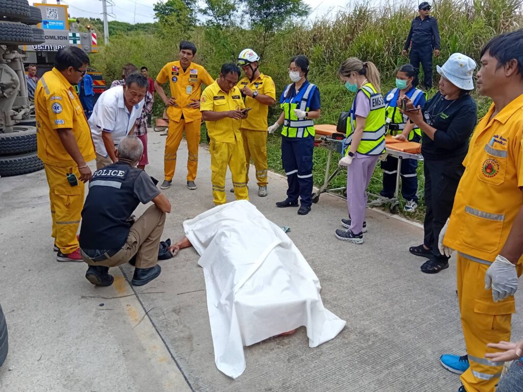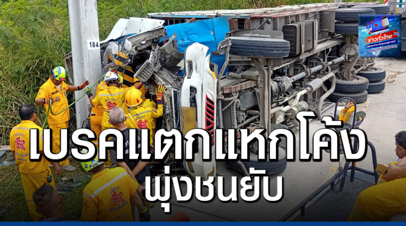 ระทึก รถพ่วงหกล้อเบรคแตกแหกโค้งพุ่งชนยับ 4 คัน คนขับ เสียชีวิตคาที่