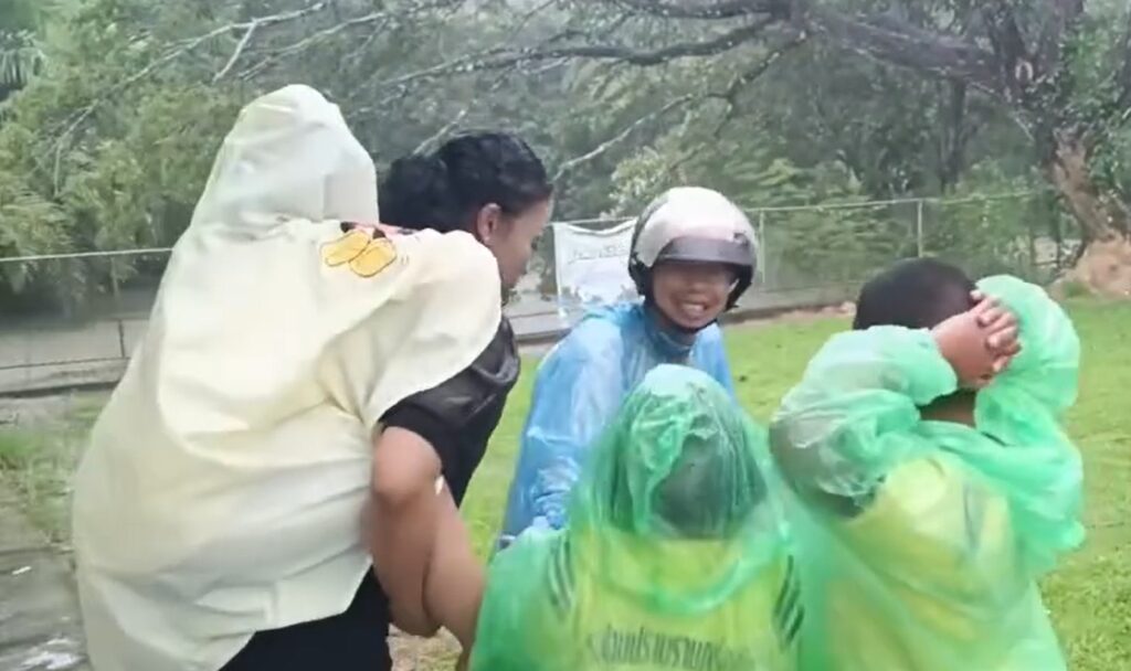 ที่โรงเรียนบ้านปราบราษฎร์อุทิศ อยู่ที่ต.สี่ขีด อ.สิชล ในช่วงบ่ายของวานนี้ (19 พ.ย.) เกิดฝนตกหนัก น้ำป่าไหลผ่านบนถนนหน้าโรงเรียน และนางอุดมศรี สมทรง ผอ.โรงเรียน ให้เด็กนักเรียนประถมขี่หลังลุยน้ำท่วมให้พ้นจากจุดน้ำเชี่ยวและลึกสุ่มเสี่ยงอันตราย ให้นักเรียนเดินกลับบ้านอย่างปลอดภัยสร้างความประทับใจให้กับเด็ก ผู้ปกครอง และผู้คนที่พบเห็น