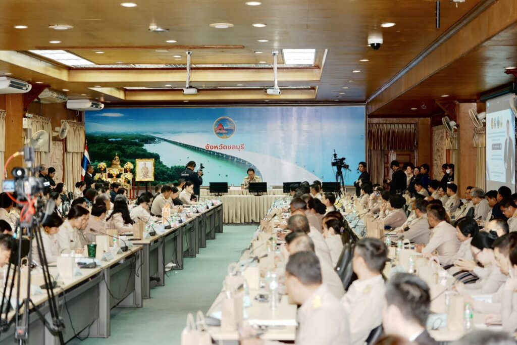 ช่วงบ่ายวันที่ 24 พฤศจิกายน 2568 ที่ห้องประชุมศาลากลางจังหวัดชลบุรี นายสุชาติ ชมกลิ่น รองนายกรัฐมนตรี และรัฐมนตรีว่าการกระทรวงทรัพยากรธรรมชาติและสิ่งแวดล้อม เป็นประธานการประชุมมอบนโยบายด้านการกำกับและติดตามการปฏิบัติราชการในภูมิภาค