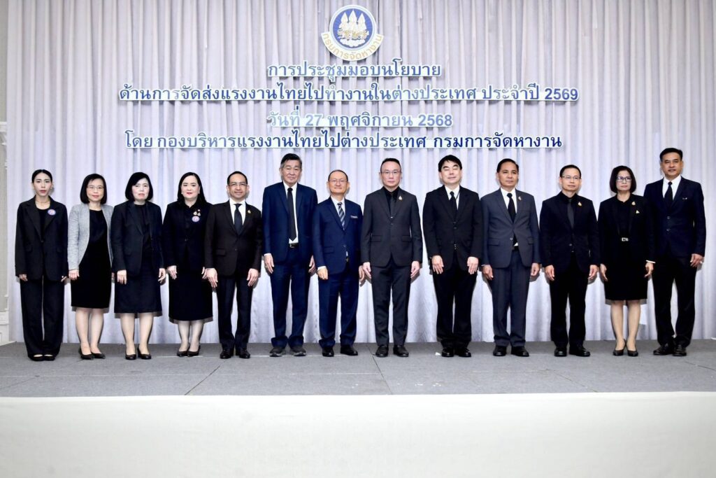 วันที่ 27 พฤศจิกายน 2568 เวลา 09.30 น. นายสมชาย มรกตศรีวรรณ อธิบดีกรมการจัดหางาน เป็นประธานมอบนโยบายด้านการจัดส่งแรงงานไทยไปทำงานต่างประเทศ ประจำปี 2569 โดยมี ผู้บริหารกระทรวงแรงงาน นางสาวอรัญญา สกุลโกศล ประธานสมาคมนายจ้างส่งเสริมแรงงานไทย และ ภาคเอกชนเข้าร่วมกว่า 300 คน ณ ห้องแกรนด์บอลรูม ชั้น 3 โรงแรมดิ เอมเมอรัลด์ เขตห้วยขวาง กรุงเทพมหานคร การประชุมครั้งนี้ถือเป็นเวทีใหญ่ปลายปี ที่เปิดโอกาสให้รัฐและเอกชนร่วมกำหนดทิศทางการส่งออกแรงงานไทยในปี 2569 ซึ่งเป็นช่วงเวลาที่ตลาดแรงงานโลกกำลังแข่งขันกันอย่างเข้มข้น และแรงงานไทยจำเป็นต้อง “ยืนหนึ่งด้านทักษะและความน่าเชื่อถือ” เพื่อรักษาพื้นที่ในตลาดงานต่างประเทศ ทบทวนภาพรวมปี 2568 : แรงงานไทย 200,000 คนในต่างประเทศคือแรงขับเคลื่อนเศรษฐกิจ อธิบดีกรมการจัดหางานกล่าวในที่ประชุมว่า ปีที่ผ่านมา แรงงานไทยในต่างประเทศกว่า 200,000 คน มีบทบาทสำคัญในการนำรายได้กลับประเทศ และช่วยกระตุ้นเศรษฐกิจครัวเรือนไทยอย่างต่อเนื่อง ในปี 2568 มีแรงงานไทยที่เคยไปทำงานต่างประเทศ กว่า 1,300 คน