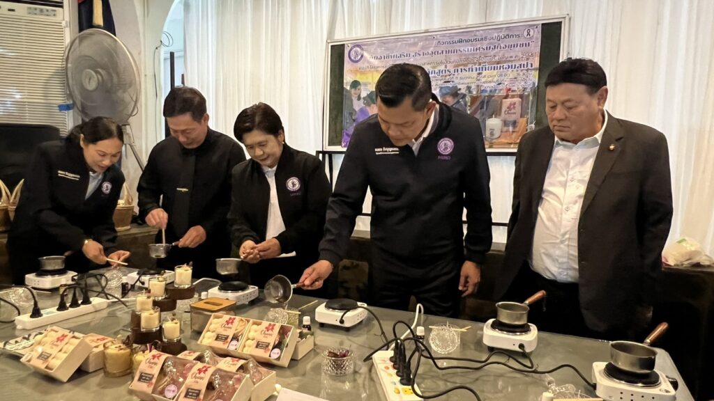 ที่เข้าร่วมการอบรมการสร้างอาชีพ “หลักสูตร การทำเทียนหอมสปา ผ้ามัด ย้อม ตะกร้าสานพลาสติก และดอกไม้จันทน์” ในครั้งนี้ ทักษะที่ได้รับ เช่น การผลิตผลิตภัณฑ์ของใช้ของตกแต่งของที่ระลึก การพัฒนาบรรจุภัณฑ์ การตลาดออนไลน์ การคำนวณต้นทุน-กำไรเบื้องต้นและมาตรฐานผลิตภัณฑ์ชุมชน (มผช.) รายได้เสริมคาดการณ์ต่อครัวเรือน : 1,000 บาท/เดือน ผลทางเศรษฐกิจต่อพื้นที่ “รายได้เฉลี่ยชุมชนเพิ่มขึ้น 300,000 บาท/เดือน พร้อมเข้าสู่ช่องทางตลาด ทั้งออฟไลน์-ออนไลน์ คาดเพิ่มมูลค่าผลิตภัณฑ์ชุมชนรวมไม่ต่ำกว่า 3,600,000 ล้านบาท/ปี” นอกจากได้เรียนรู้ทักษะใหม่แล้ว ยังเกิดการปลดล็อคแนวความคิดเปิดมุมมองในการประกอบอาชีพเสริมด้วยการนำวัตถุดิบในท้องถิ่นมาเพิ่มมูลค่าด้วย ภูมิปัญญา และวัฒนธรรมในท้องถิ่นมาสร้างเป็นผลิตภัณฑ์ในขณะเดียวกัน นอกจากนี้ยังมีการนำผู้ประกอบการต้นแบบที่ประสบความสำเร็จ จากการทำธุรกิจมาร่วมจัดแสดงผลิตภัณฑ์ ผลการดำเนินการที่ผ่านมาเพื่อเป็นแรงบันดาลใจ รวมทั้งอำนวยความสะดวกการให้บริการปรึกษาแนะนำและวิเคราะห์ปัญหาการประกอบธุรกิจเบื้องต้น ผ่านศูนย์ปฏิรูป อุตสาหกรรม (ITC) ธนาคารพัฒนาวิสาหกิจขนาดกลางและขนาดย่อมแห่งประเทศไทย และสำนักงาน วิสาหกิจขนาดกลางและขนาดย่อม (สสว.) อีกด้วย