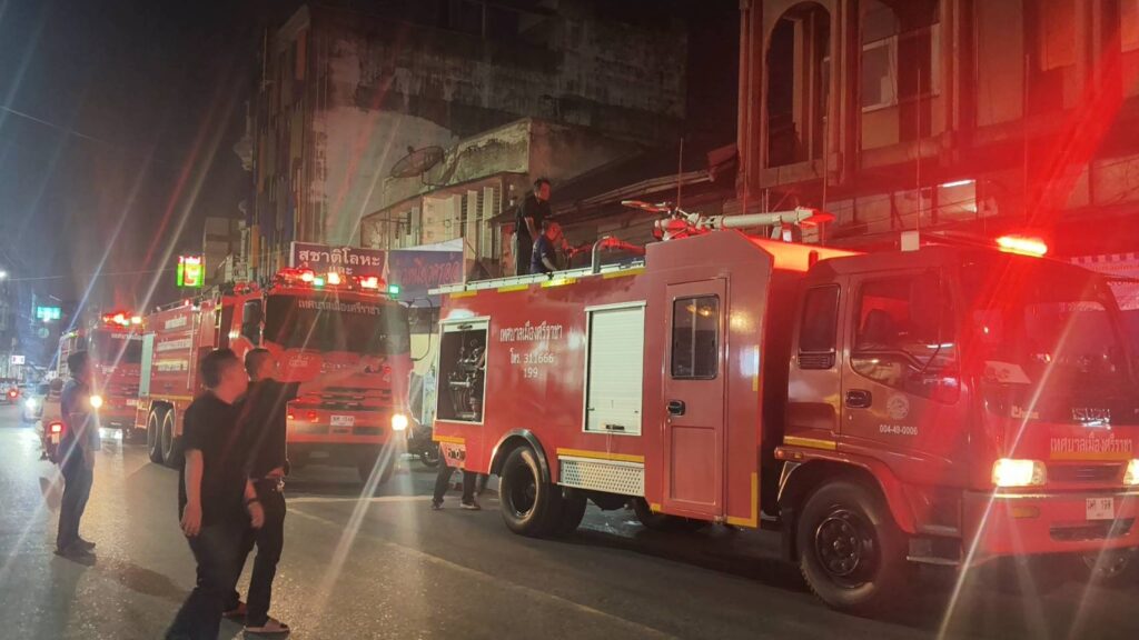 ถนนสุรศักดิ์ 1 ตำบลศรีราชา อำเภอศรีราชา จังหวัดชลบุรี ซึ่งเป็นตึก 3 ชั้น ขนาดกว้างประมาณ 12 เมตร อยู่ใจกลางเมืองศรีราชาจึงประสานรถดับเพลิงเทศบาลเมืองศรีราชา ก่อนเดินทางไปตรวจสอบ และหน่วยกู้ภัยสว่างประทีปศรีราชา