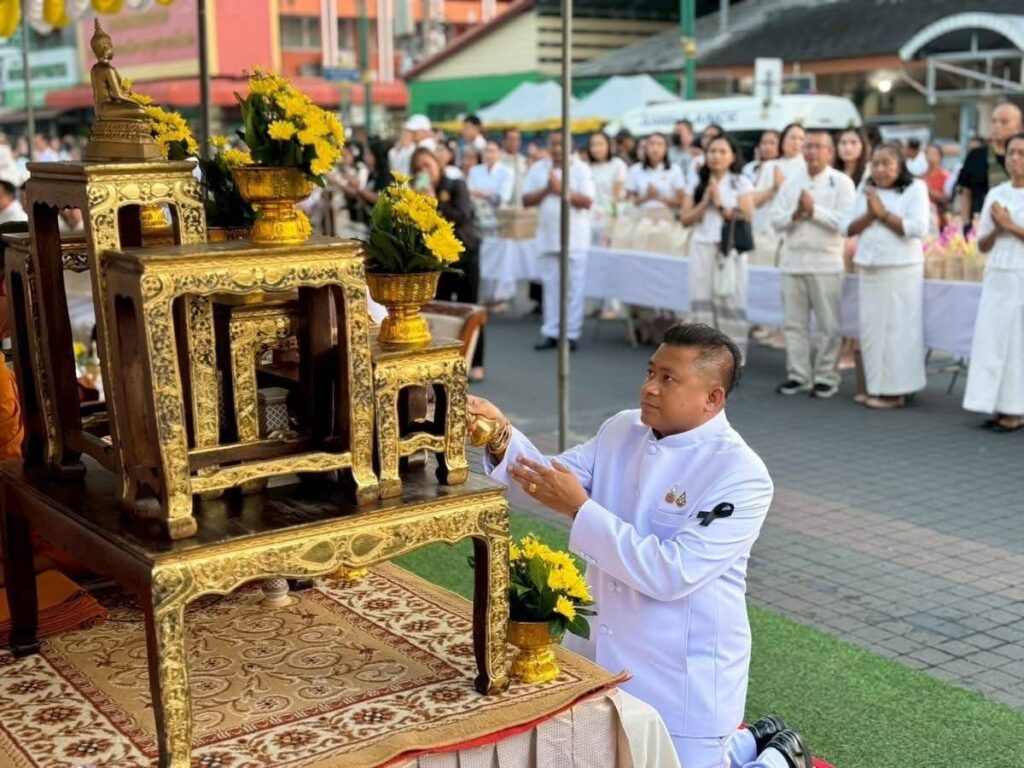 เช้าวันนี้(1 มกราคม 2569) ที่บริเวณถนนราชดำเนิน ด้านหน้าวัดพระมหาธาตุ วรมหาวิหาร จังหวัดนครศรีธรรมราช นายสมชาย ลีหล้าน้อย ผู้ว่าราชการจังหวัดนครศรีธรรมราช พร้อมด้วยนางวันษา ลีหล้าน้อย นายกเหล่ากาชาดจังหวัดและประธานแม่บ้านมหาดไทยจังหวัดนครศรีธรรมราช นางวจิราพร อมาตยกุล รองผู้ว่าราชการจังหวัดนครศรีธรรมราชพร้อมคู่สมรส นายกเทศมนตรีนครนครศรีธรรมราช หัวหน้าส่วนราชการ ผู้บริหารส่งท้องถิ่นท้องที่ พุทธศาสนิกชนและนักท่องเที่ยวจำนวนนับหมื่นคน เข้าร่วมประกอบพิธีทำบุญตักบาตรเพื่อความเป็นสิริมงคลแก่ตนเองและครอบครัว เนื่องในโอกาสวันขึ้นปีใหม่ พ.ศ.2569 โดยมีพระเทพสิริวชิรเวที เจ้าคณะภาค 16 (ธ) ผู้ช่วยเจ้าอาวาสวัดพระมหาธาตุ วรมหาวิหาร เป็นประธานสงฆ์ ได้แสดงสัมโมทนียกถาให้พรปีใหม่ 2569 ชี้แนะแนวทางการดำเนินชีวิตด้วยสติ ปัญญา และความเพียร เพื่อสร้างความสุข ความเจริญ และความปลอดภัยในชีวิต ก่อนนำคณะสงฆ์ประกอบพิธีทางศาสนาและออกรับบิณฑบาต