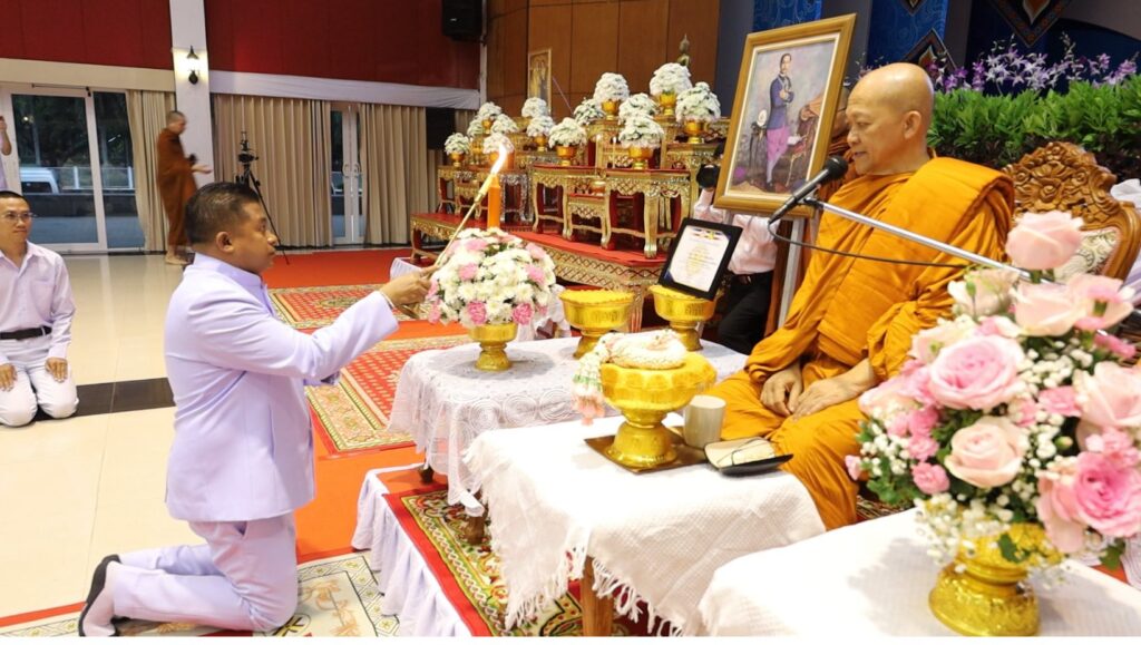 พร้อมกล่าวคำถวายสังฆทาน พระสงฆ์เจริญพระพุทธมนต์ อาราธนาธรรม จากนั้นประธานฝ่ายสงฆ์แสดงพระธรรมเทศนา นำเจริญพระพุทธมนต์ ประธานในพิธีและผู้เข้าร่วมพิธีถวายการปฏิบัติธรรม เจริญพุทธานุสติเป็นเวลา 10 นาที พร้อมน้อมจิตอุทิศถวายเป็นพระราชกุศลแด่พระบาทสมเด็จพระบรมชนกาธิเบศร มหาภูมิพลอดุลยเดชมหาราช บรมนาถบพิตร รวมถึงสมเด็จพระนางเจ้าสิริกิติ์ พระบรมราชินีนาถ พระบรมราชชนนีพันปีหลวง ร่วมแสดงออกถึงความจงรักภักดี ความสามัคคี และการน้อมนำหลักธรรมคำสอนตามแนวพระราชดำริมาเป็นแนวทางในการดำเนินชีวิต อันก่อให้เกิดประโยชน์สุขแก่ประชาชนและประเทศชาติสืบไป