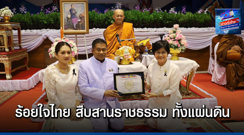 สำหรับการจัดโครงการ “ร้อยใจไทย สืบสานราชธรรม ทั้งแผ่นดิน” จังหวัดนครศรีธรรมราช จัดขึ้น เพื่ออุทิศถวายเป็นพระราชกุศลแด่ สมเด็จพระนางเจ้าสิริกิติ์ พระบรมราชินีนาถ พระบรมราชชนนีพันปีหลวง พิธีเริ่มตั้งแต่เวลา 06.00 น. ผู้เข้าร่วมงานพร้อมกัน ณ บริเวณพิธี เวลา 06.30 น. พระราชวชิรสุทธิวังศ์ เจ้าอาวาสวัดป่าพุทธพจน์หริภุญไชย (ธ) ในพระราชูปถัมภ์ เป็นประธานฝ่ายสงฆ์ ประกอบพิธีทางศาสนา ประธานในพิธีจุดธูปเทียนบูชาพระรัตนตรัย และถวายเครื่องทองน้อยหน้าพระบรมฉายาลักษณ์พระบาทสมเด็จพระบรมชนกาธิเบศร มหาภูมิพลอดุลยเดชมหาราช บรมนาถบพิตร และพระฉายาลักษณ์สมเด็จพระนางเจ้าสิริกิติ์ พระบรมราชินีนาถ พระบรมราชชนนีพันปีหลวง ประธานในพิธีถวายมาลัยกร กราบสักการะพระราชวชิรสุทธิวงศ์ เจ้าอาวาสวัดป่าพุทธพจน์หริภุญไชย (ธ) เจ้าหน้าที่นำกล่าวคำบูชาพระรัตนตรัย