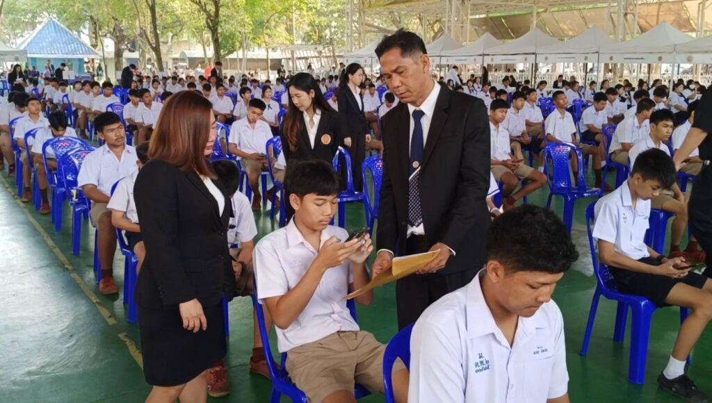 เมื่อเวลา 09.00 น. วันที่ 17 ม.ค.69 ที่โดมเอนกประสงค์ วิทยาลัยเทคนิคระยอง ต.ท่าประดู่ อ.เมือง จ.ระยอง ผู้สื่อข่าวรายงานว่า วิทยาลัยเทคนิคระยอง ได้เปิดให้มีการสอบแข่งขันเข้าศึกษาต่อในระดับ ปวช. และ ปวส. ระดับเกรดเฉลี่ย 2.75 ทำข้อสอบผ่านทางโทรศัพท์มือถือ และกรณีที่นักเรียน นักศึกษา ไม่มีโทรศัพท์มือถือ หรือโทรศัพท์ไม่มีสัญญาณอินเทอร์เน็ต หรือแบตเตอรี่หมด ก็จะมีแทปเลตให้ใช้สอบแทนโทรศัพท์มือถือด้วย ซึ่งหลังสอบเสร็จ ก็จะสามารถทราบผลสอบได้ทันที โดยมีนักเรียน นักศึกษาสมัครเข้าสอบกว่า 700 คน ท่ามกลางผู้ปกครองที่มาลุ้นให้กำลังใจบุตรหลานจำนวนมาก