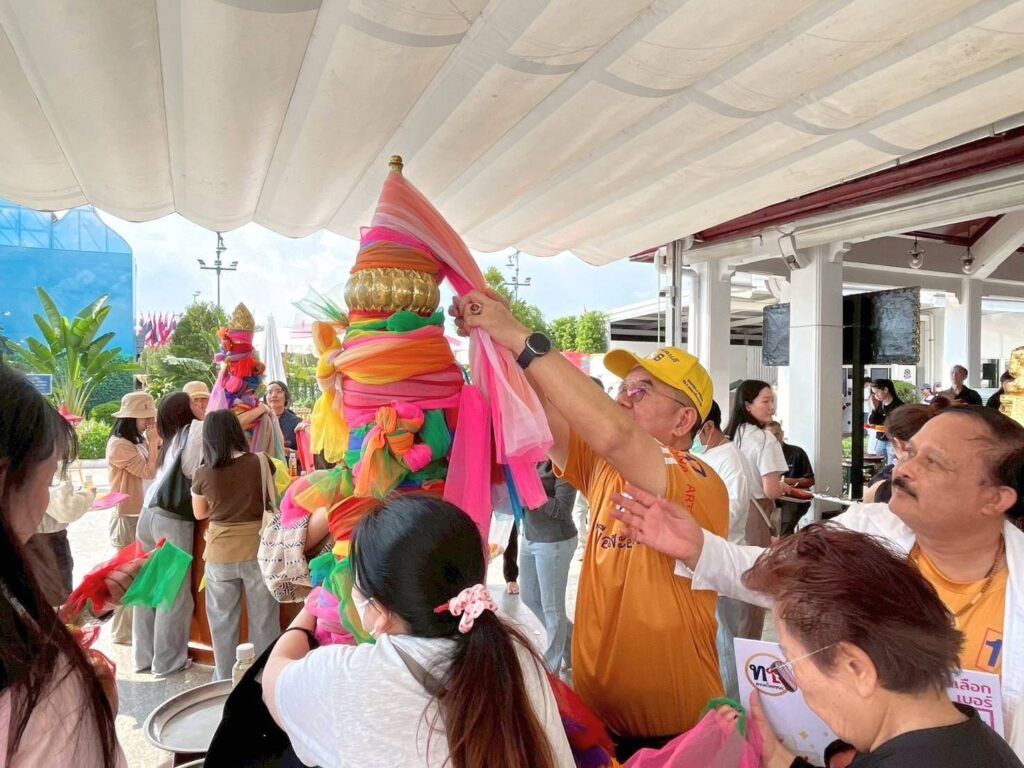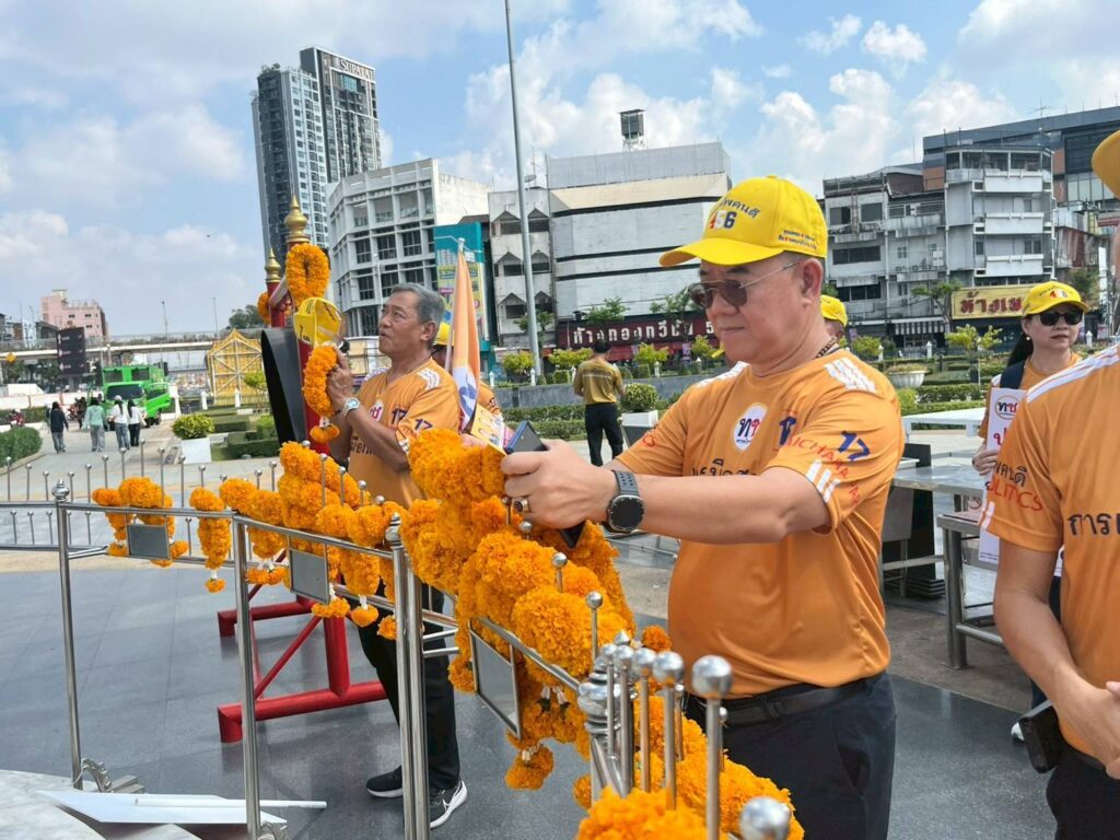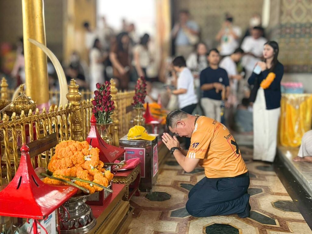 จากนั้นได้เดินทางไปกราบสักการะอนุสาวรีย์พระบาทสมเด็จพระพุทธยอดฟ้าจุฬาโลกมหาราช รัชกาลที่ 1 ปฐมกษัตริย์แห่งราชวงศ์จักรี เพื่อแสดงออกถึงความจงรักภักดีต่อสถาบันพระมหากษัตริย์ และในช่วงบ่ายได้เดินทางไปกราบขอพรศาลหลักเมืองและพระสยามเทวาธิราช เพื่อขอพรให้ประสบชัยชนะในการเลือกตั้งวันที่ 8 กุมภาพันธ์ 2569