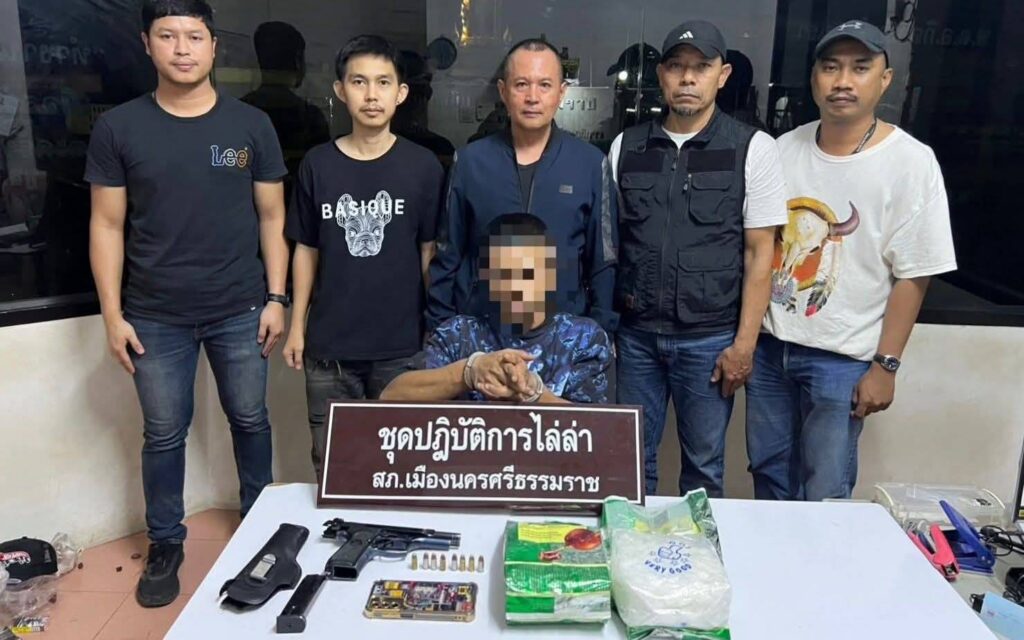 สุดระทึก..!!ตำรวจชุดไล่ล่าเมืองคอนปิดล้อมจับ “ซัน ทุ่งจีน”หนุ่มสกุลดังบ้านใหญ่เมืองคอน-ยึดไอซ์ 2 กก.พร้อมอาวุธปืน 1 กระบอกกระสุน 8 นัด