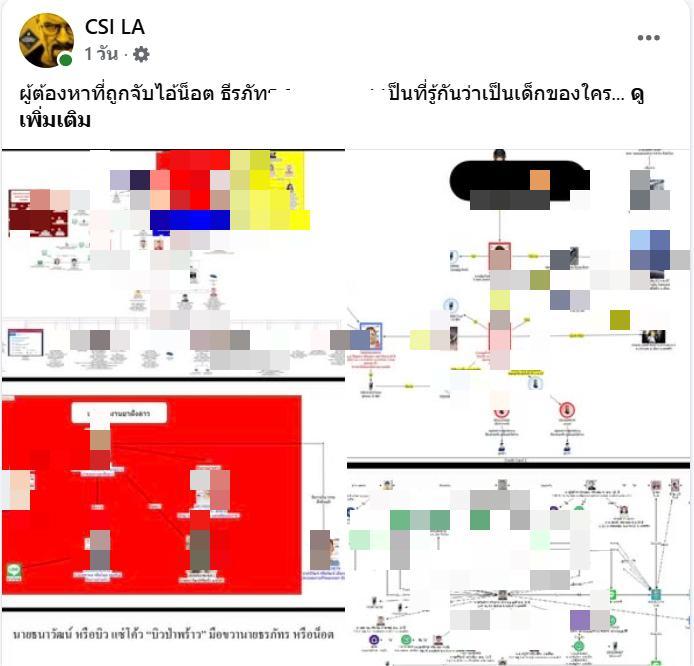 (22 ม.ค.) ผู้สื่อข่าวรายงานว่า กรณีการจับกุมผู้ต้องหารายดังกล่าวได้รับความสนใจจากประชาชนอย่างกว้างขวาง ล่าสุดเพจ CSI LA ซึ่งเป็น 1 ใน 6 เพจที่ถูกแจ้งความ ได้โพสต์ภาพแผนผังเครือข่ายที่เกี่ยวข้องกับขบวนการค้ายาเสพติดของ “ซัน ทุ่งจีน” อย่างละเอียด