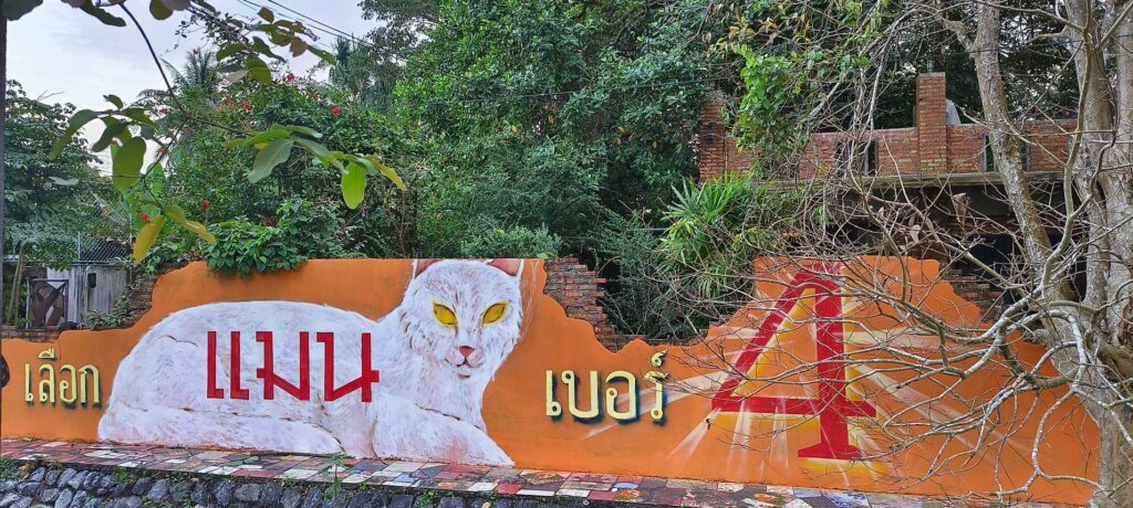 ผู้สื่อข่าวรายงานว่าล่าสุดพบว่ามีบ้านหลังหนึ่งบริเวณถนนกะโรม ตำบลโพธิ์เสด็จ มีการทาสีบ้านเป็นสีส้ม พร้อมวาดภาพแมวและเขียนข้อความแมน เบอร์ 4