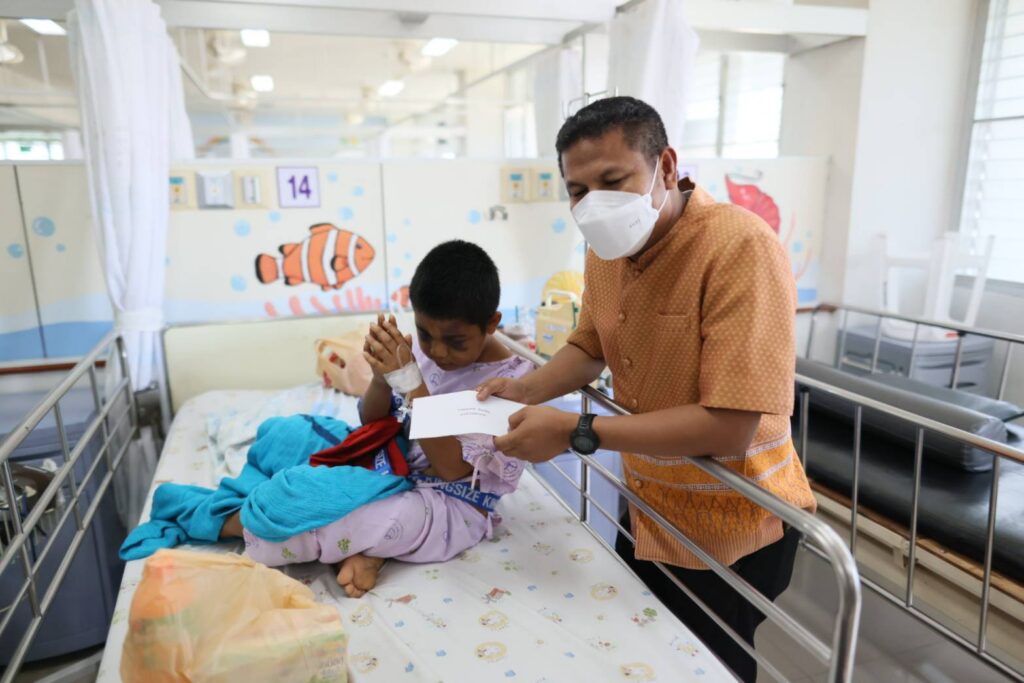 โดยมอบหมายให้นาย ประสงค์ จันทร์หยู นายอำเภอท่าศาลา นำทีมลงพื้นที่ พร้อมด้วย พัฒนาสังคมและความมั่นคงของมนุษย์จังหวัดนครศรีธรรมราช (พม.จ.) เทศบาลเมืองท่าศาลา ผู้นำชุมชน มูลนิธิ และกลุ่มจิตอาสา เดินทางไปเยี่ยมน้องโป้ซึ่งขณะนี้พักรักษาตัวอยู่ที่ โรงพยาบาลท่าศาลา โดยมีทีมแพทย์และพยาบาลดูแลอย่างใกล้ชิด พร้อมยืนยันว่าการรักษาทั้งหมดไม่มีค่าใช้จ่าย และน้องโป้มีประวัติการรักษาโรคมะเร็งเม็ดเลือดขาวกับโรงพยาบาลแห่งนี้มาอย่างต่อเนื่อง