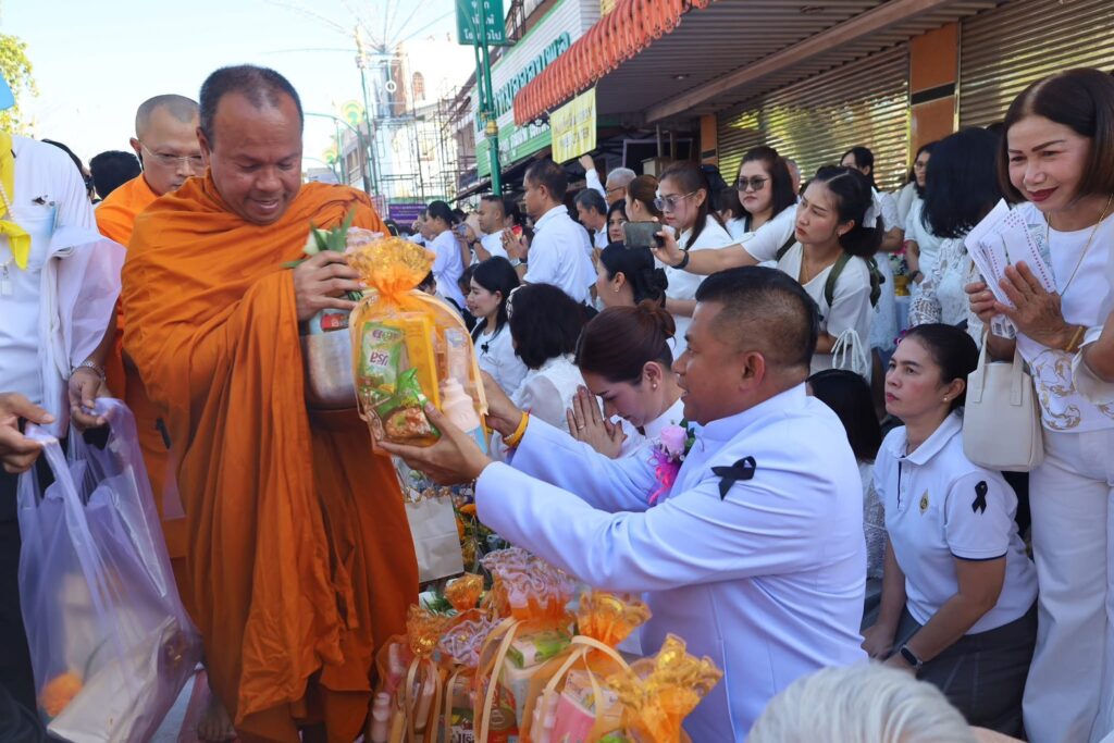 วันนี้ (28 ก.พ.69) เวลา 06.00 น. ณ วัดพระมหาธาตุ วรมหาวิหาร พระเทพสิริวชิรเวที เจ้าคณะภาค 16 (ธ) วัดพระมหาธาตุ วรมหาวิหาร จังหวัดนครศรีธรรมราช เป็นประธานสงฆ์ นายสมชาย ลีหล้าน้อย ผู้ว่าราชการจังหวัดนครศรีธรรมราช เป็นประธานฆราวาส ในพิธีตักบาตรมหากุศล 11,250 รูป เฉลิมฉลอง 1,250 ปี ศรีธรรมราชเจดีย์สู่มรดกโลก พร้อมกันนี้หัวหน้าส่วนราชการ ภาคประชาชน และภาคประชาสังคมได้พร้อมใจกันจัดพิธีบำเพ็ญกุศลอุทิศถวายเป็นพระราชกุศลแด่พระบาทสมเด็จพระบรมชนกาธิเบศร มหาภูมิพลอดุลยเดชมหาราช บรมนาถบพิตร และสมเด็จพระนางเจ้าสิริกิติ์ พระบรมราชินีนาถ พระบรมราชชนนีพันปีหลวง จากนั้นพระภิกษุสงฆ์จาก 14 จังหวัดภาคใต้แปรแถวรรับบิณฑบาตตลอดแนวถนนราชดำเนินต่อเนื่องไปจนถึงแยกหอนาฬิกา