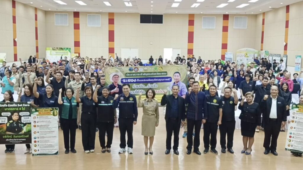 เมื่อเวลา 11.00 น. วันที่ 9 มี.ค.69 ที่โรงเรียนนานาชาติตากสินแกลง อ.แกลง จ.ระยอง น.ส.สลารีวรรณ ทัพทวี รองผู้ว่าราชการจังหวัดระยอง เป็นประธานในการประกาศจุดยืน Kick off วาระสำคัญของจังหวัด รณรงค์ประชาสัมพันธ์ สร้าง-ปลุกจิตสำนึก ทุเรียนระยองทุเรียนคุณภาพดี และมาตรการควบคุมทุเรียนเพื่อการส่งออก โดยมีนายปิยะ ปิตุเตชะ นายก อบจ.ระยอง นายประสานต์ พฤกษาชาติ รองนายก อบจ.ระยอง น.ส.สมหมาย พลมณี เกษตรจังหวัดระยอง นายนพดล แดงพวง ผอ. ศูนย์วิจัยและพัฒนาการเกษตรระยอง นายธนโชค พงษ์ชวลิต เกษตรและสหกรณ์จังหวัดระยอง นางเอกอนงค์ บัวมาศ พาณิชย์จังหวัดระยอง ร่วมเป็นเกียรติ และมีเกษตรกรชาวสวนทุเรียน ผู้ประกอบการโรงคัดบรรจุทุเรียนเพื่อการส่งออก หัวหน้าส่วนราชการที่เกี่ยวข้อง ผู้บริหาร อปท. กำนัน ผู้นำท้องถิ่น จำนวน 300 คน เข้าร่วมงานฯ ภายในงานพิธีมอบป้ายประชาสัมพันธ์โครงการฯ จำนวน 300 ป้ายให้ผู้แทนอำเภอ 8 อำเภอ และมอบป้ายมาตรการ Big Cleaning 8 ข้อ และมาตรการ 4 ไม่ แก่ผู้ประกอบการ