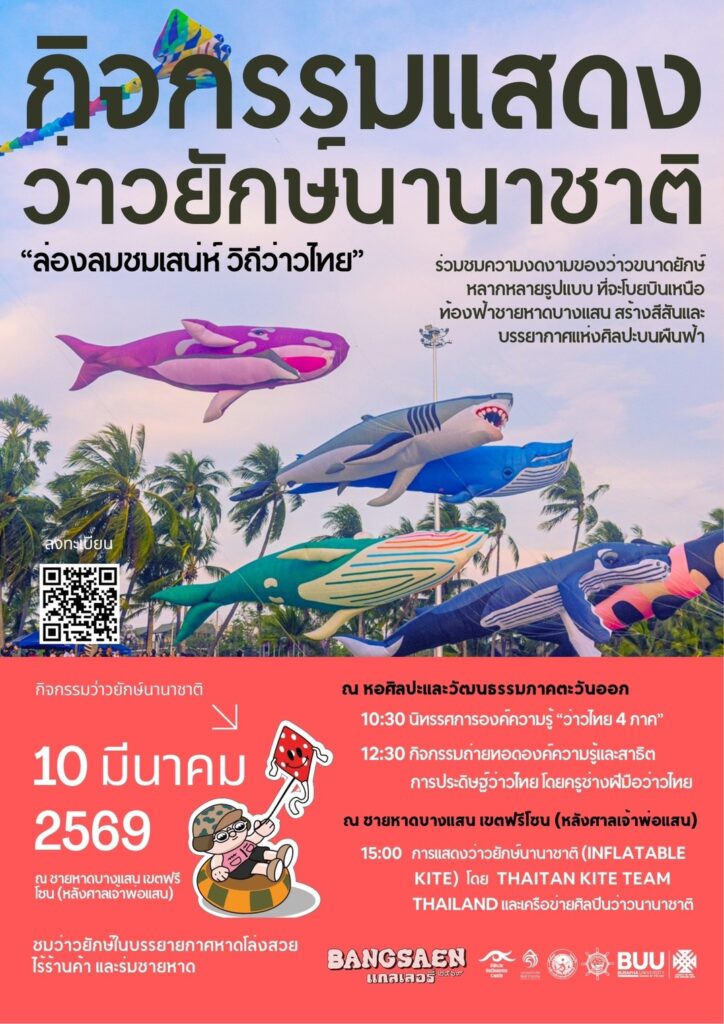 มหาวิทยาลัยบูรพา สนับสนุนการจัดกิจกรรมศิลปวัฒนธรรมกลับมาอีกครั้ง! งานว่าวยักษ์นานาชาติ x Bangsaen Gallery 2026 : แสนสุขโข