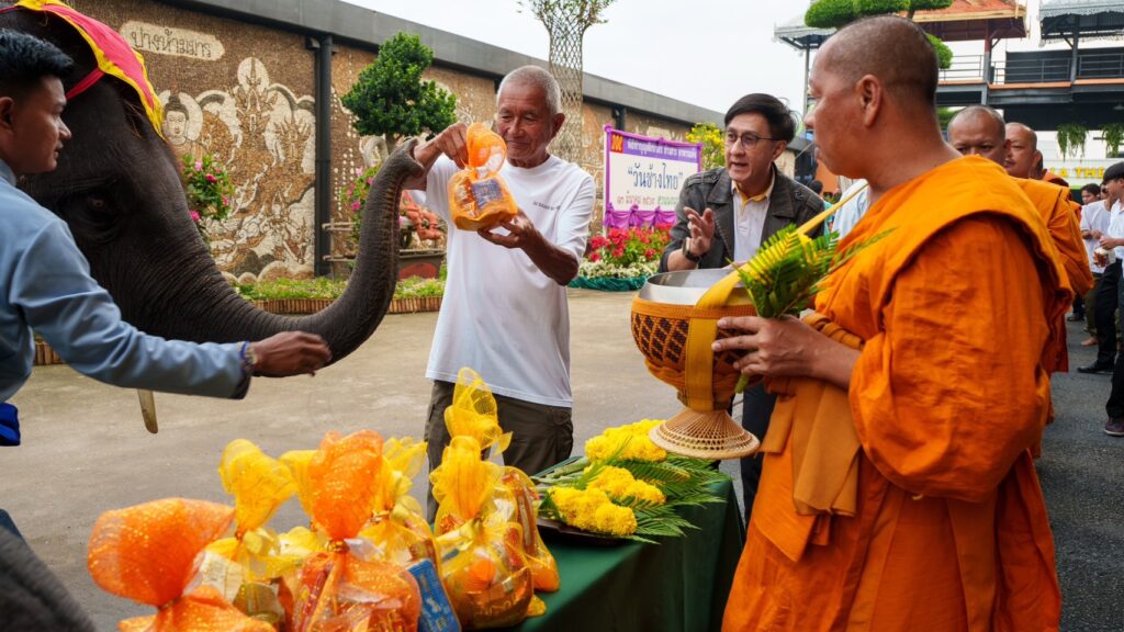 วันนี้ (13 มีนาคม 2569) เวลา 07.00 น. นายกัมพล ตันสัจจา ประธานสวนนงนุชพัทยา พร้อมคณะผู้บริหารและพนักงาน ร่วมประกอบพิธีทำบุญตักบาตรพระสงฆ์ 9 รูป โดยมีช้างเข้าร่วมพิธีจำนวน 19 เชือก เพื่อความเป็นสิริมงคลแก่ผู้ร่วมงานและโขลงช้าง พร้อมพิธีประพรมน้ำพระพุทธมนต์ให้กับผู้เข้าร่วมพิธีและช้าง ต่อมาเวลา 09.00 น. ได้มีพิธี “ฮ้องขวัญช้าง” หรือพิธีทำขวัญช้างตามประเพณีโบราณ เพื่อเสริมสิริมงคลแก่โขลงช้าง