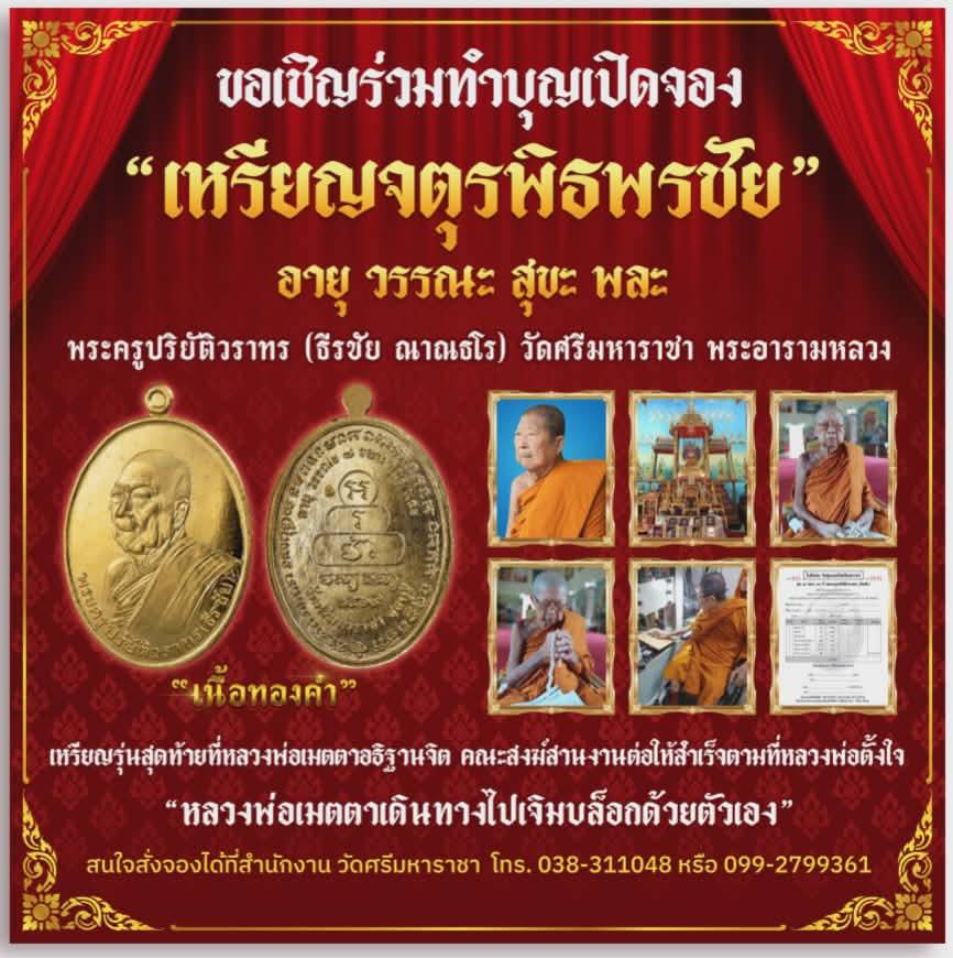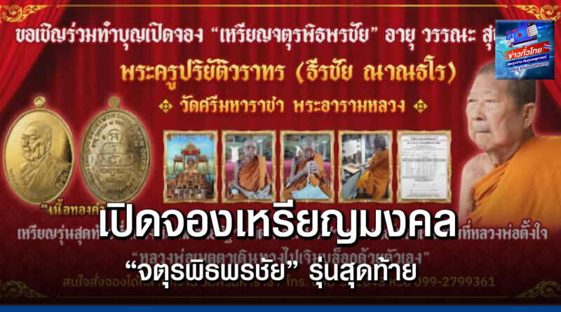 ขอเชิญร่วมบุญสั่งจองเหรียญมงคล “จตุรพิธพรชัย อายุ วรรณะ สุขะ พละ”