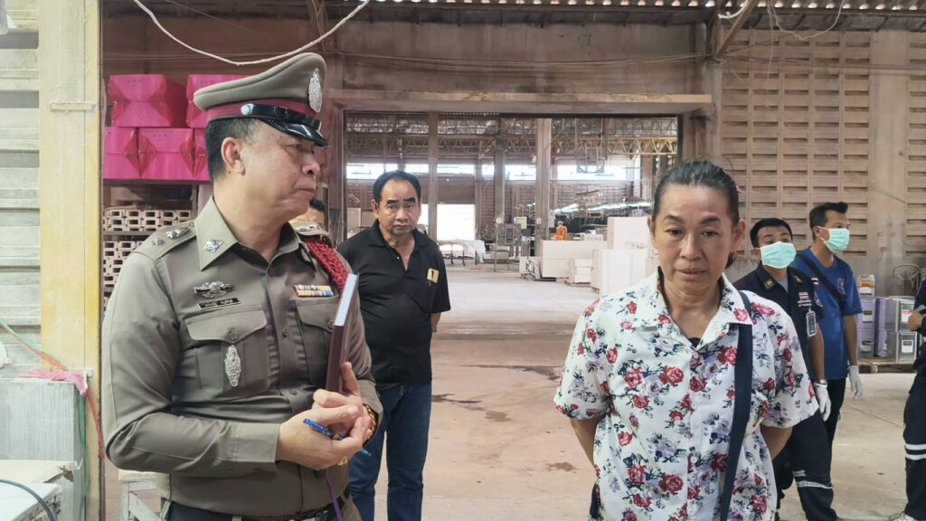 ที่เกิดเหตุเป็นโกดังเก็บชิ้นส่วนไม้อัด ภายใน บริษัท บางกอกเจริญมิตร จำกัด พบร่างผู้เสียชีวิตทราบชื่อคือ นาย HOU HAT อายุ 39 ปี สัญชาติกัมพูชา สภาพคว่ำหน้าเสียชีวิตอยู่กับพื้น มีเลือดจำนวนมาก จากการตรวจสอบเบื้องต้นไม่พบร่องรอยการถูกทำร้าย ขณะที่บริเวณหลังคาพบช่องโหว่ขนาดใหญ่ คาดว่าเป็นจุดที่ผู้เสียชีวิตพลัดตกลงมา