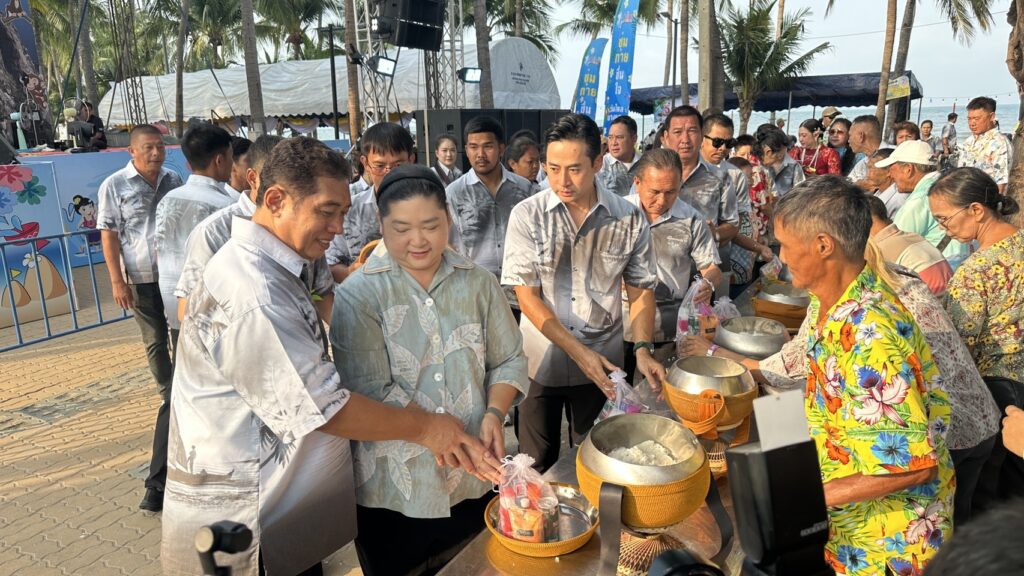 วันไหลบางแสนคึกคัก สนธยา สุกุมล อดีต รมว.กระทรวงวัฒนธรรมรดน้ำขอพรผู้สูงอายุ ณพล บริบูรณ์-นภชนก เหมือนนามอญ พร้อมด้วยข้าราชการ นักการเมืองร่วมงานกันอย่างพร้อมเพรียง