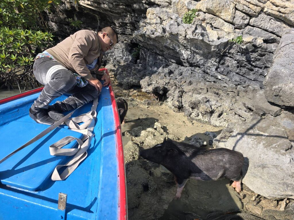 สุดน่ารัก! ฝูงหมูป่าแสนรู้โผล่ต้อนรับนักท่องเที่ยว บนเกาะเขาหินผับผ้า กลางทะเลอ่าวไทย ขนอม นครศรีธรรมราช